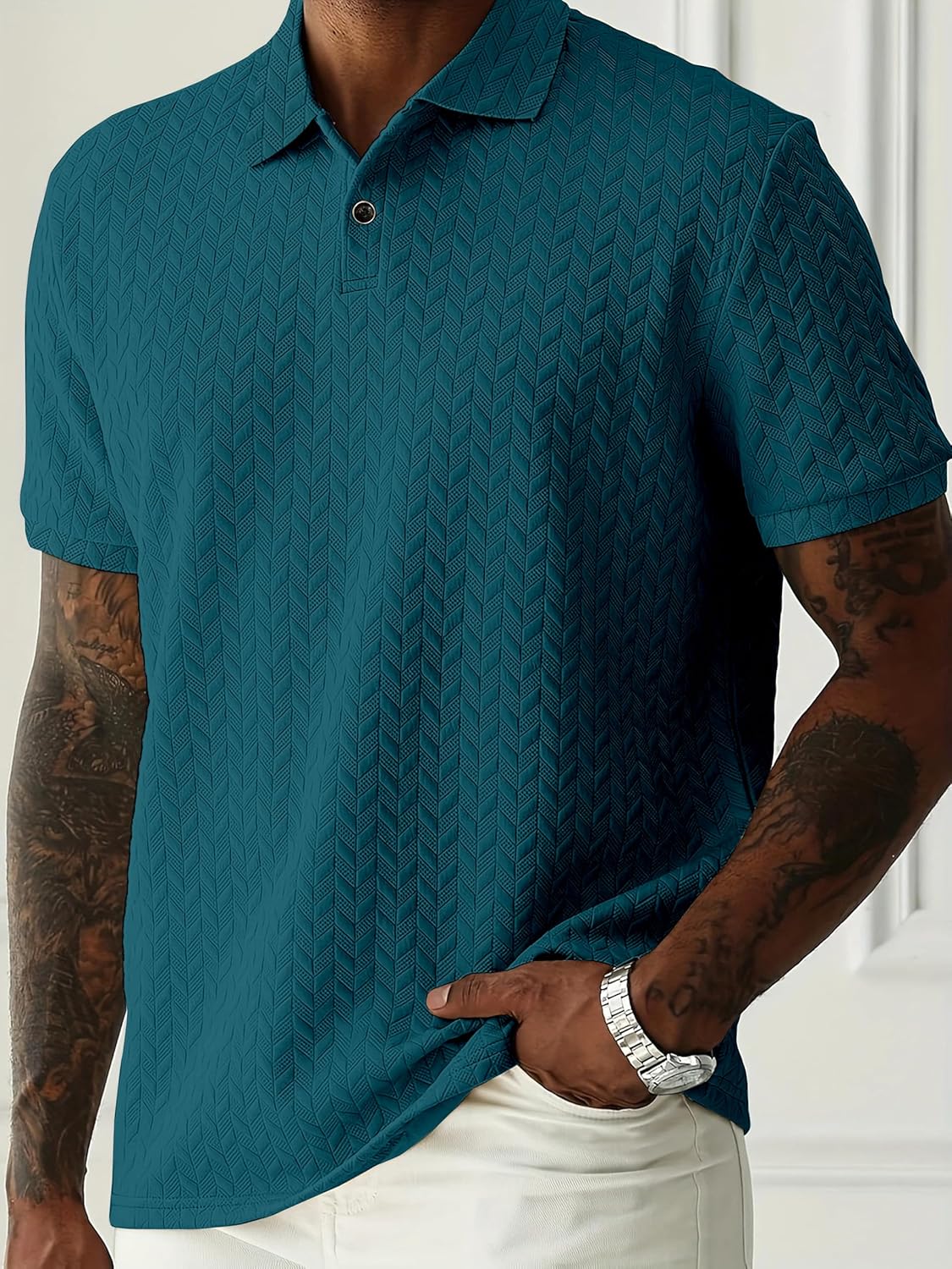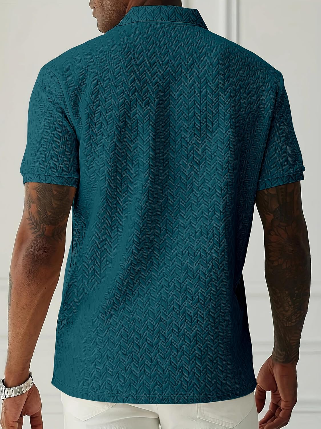 Elevate your casual wardrobe with this sophisticated quarter-zip polo t-shirt from Kajaru. The standout feature is its distinctive JCard textured pattern, creating an eye-catching geometric design across the fabric. The short-sleeved silhouette offers both style and comfort, perfect for various occasions. The premium collar design and metallic zip detail add a touch of refinement, while the textured fabric provides a luxurious feel and dimensional appearance. Available in versatile colours including brown, beige, and dusty pink, this polo pairs seamlessly with trousers or jeans for a polished look. The comfortable fit and quality construction ensure both style and durability, making it an excellent choice for modern gentlemen who appreciate attention to detail in their clothing. Ideal for casual outings, semi-formal events, or smart-casual office wear, this polo t-shirt combines contemporary design with classic appeal.
