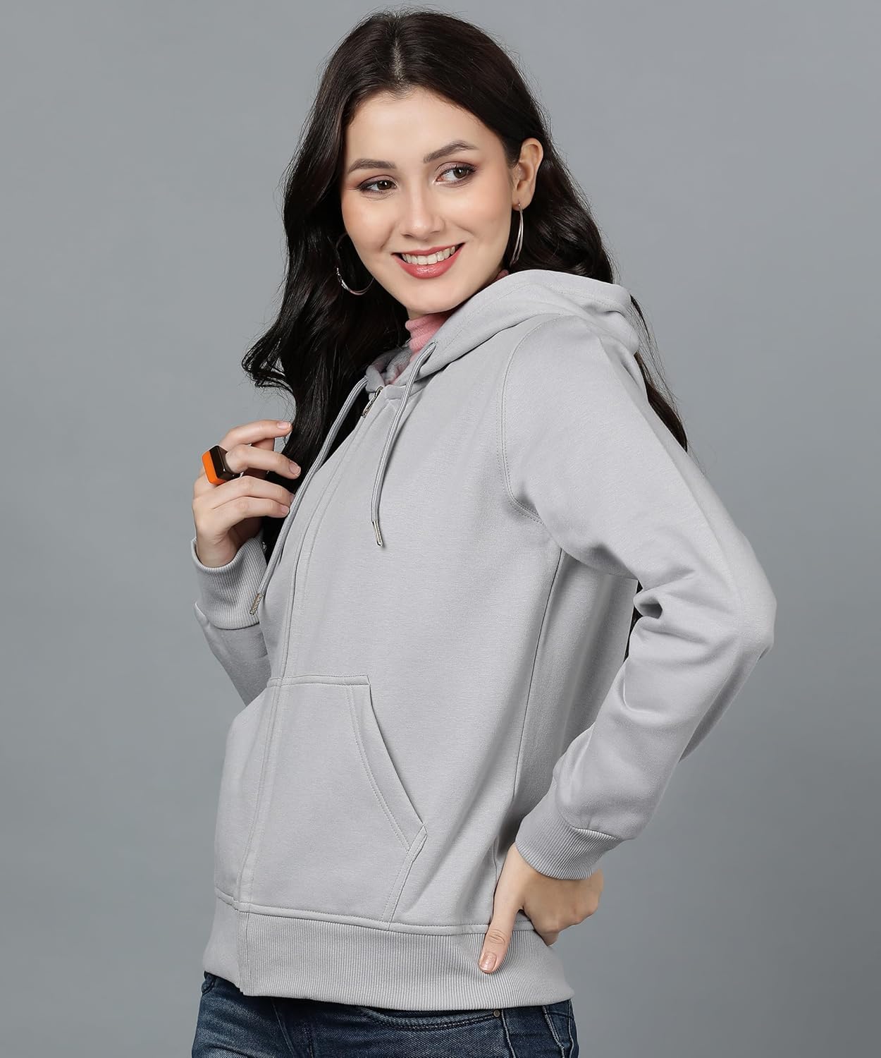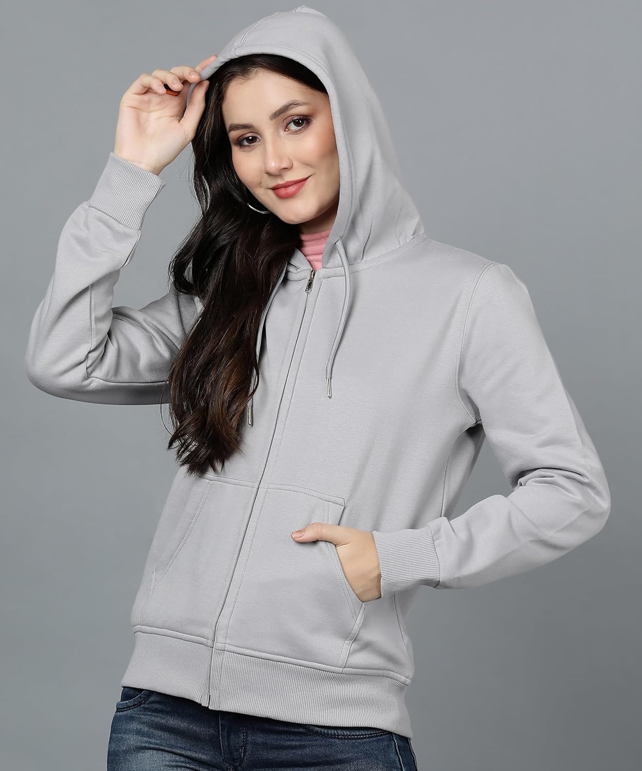Alan Jones Clothing Women’s Solid Zipper Hooded Sweatshirt | Front Zip, Ribbed Hem, Lined Hood, Casual Winter Wear