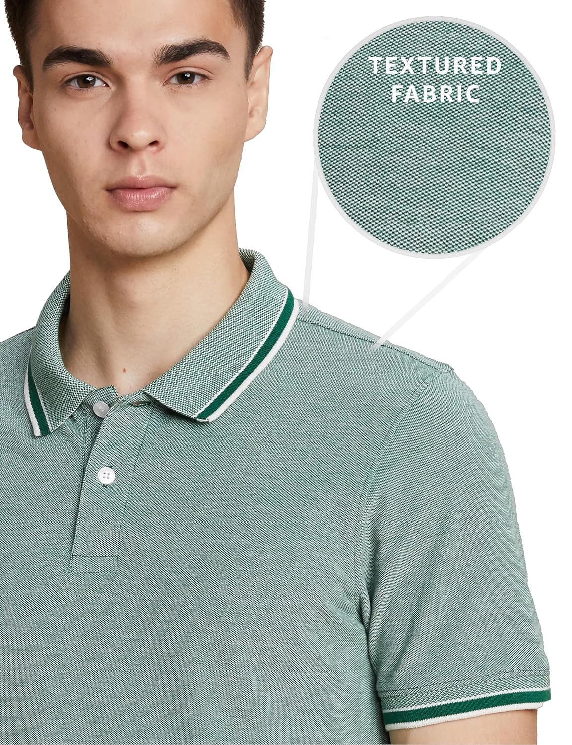 Amazon Brand – Symbol Men’s Cotton Rich Textured Polo Tshirts | Collar Plain Tshirts | Half Sleeves – Regular Fit (Available in Plus Sizes)