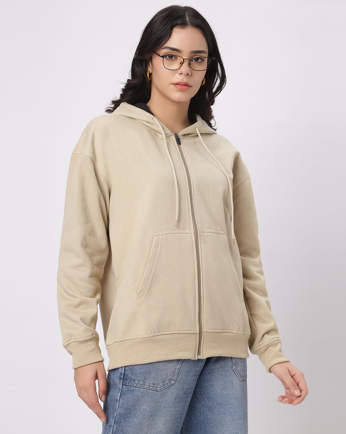 BE SAVAGE Solid Drop Shoulder Hooded Neck Long Sleeves Baggy Hoodie Winter Wear Zipper Jacket for Women’s