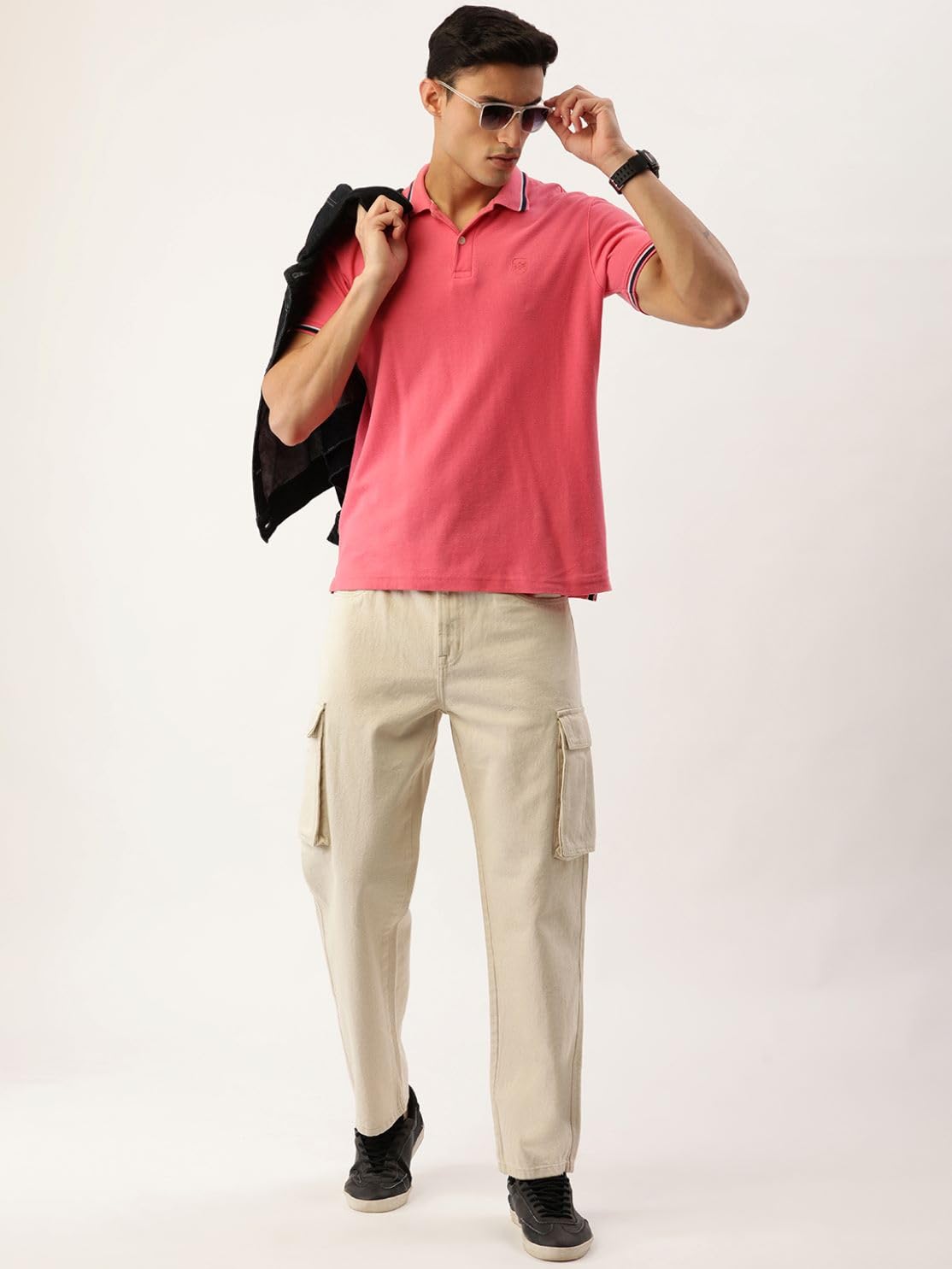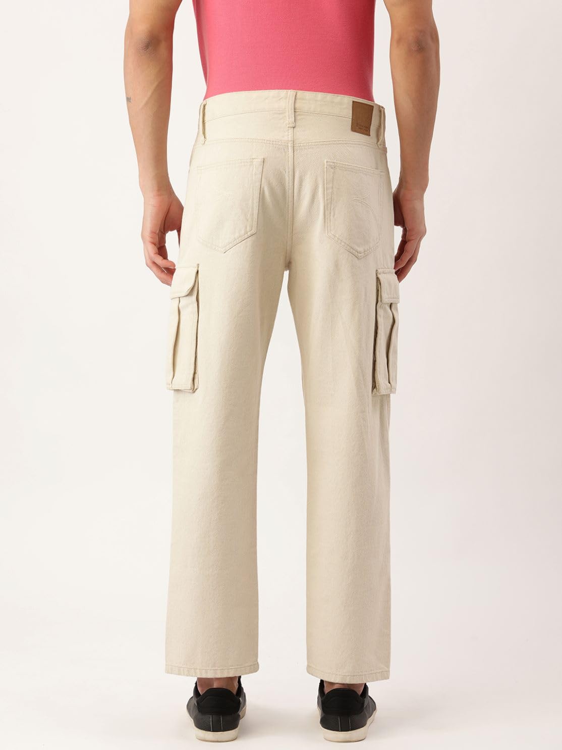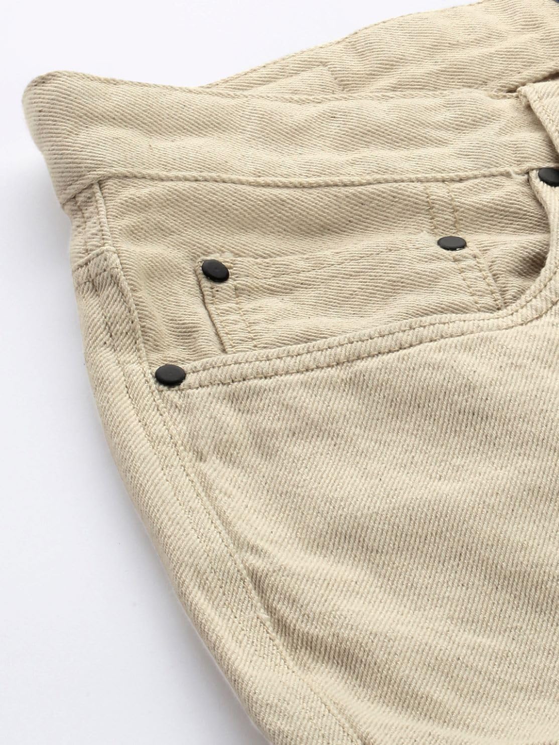 BENE KLEED Men’s Cotton Button-and-Zip Relaxed fit Cargo Denim Trouser with Baggy Utility Pockets (Ecru_34 Size)