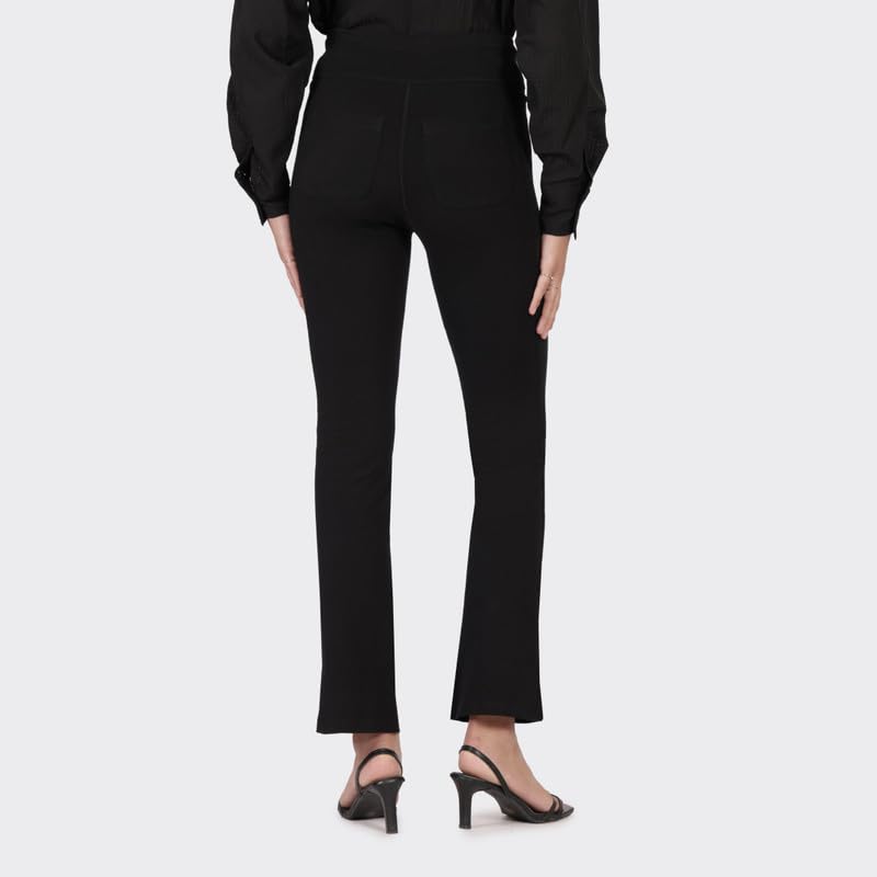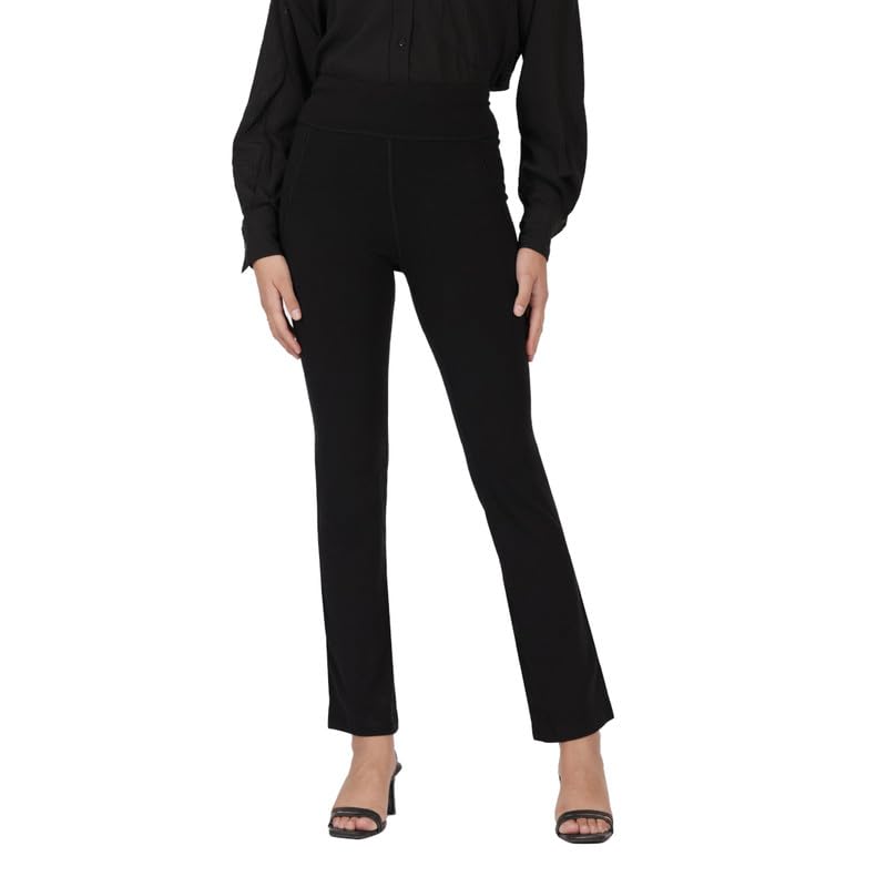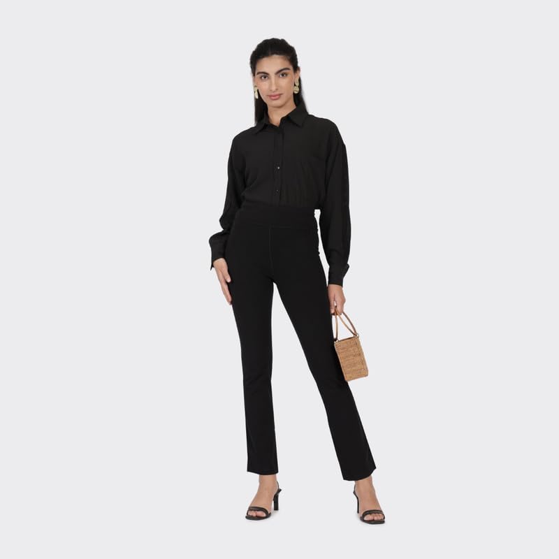BlissClub AM:PM Cotton Flare Pants for Women Upto 5’4 ft | Wide Waistband, 4 Pockets | Bell Bottom Pants and high Waist Trousers for Office wear