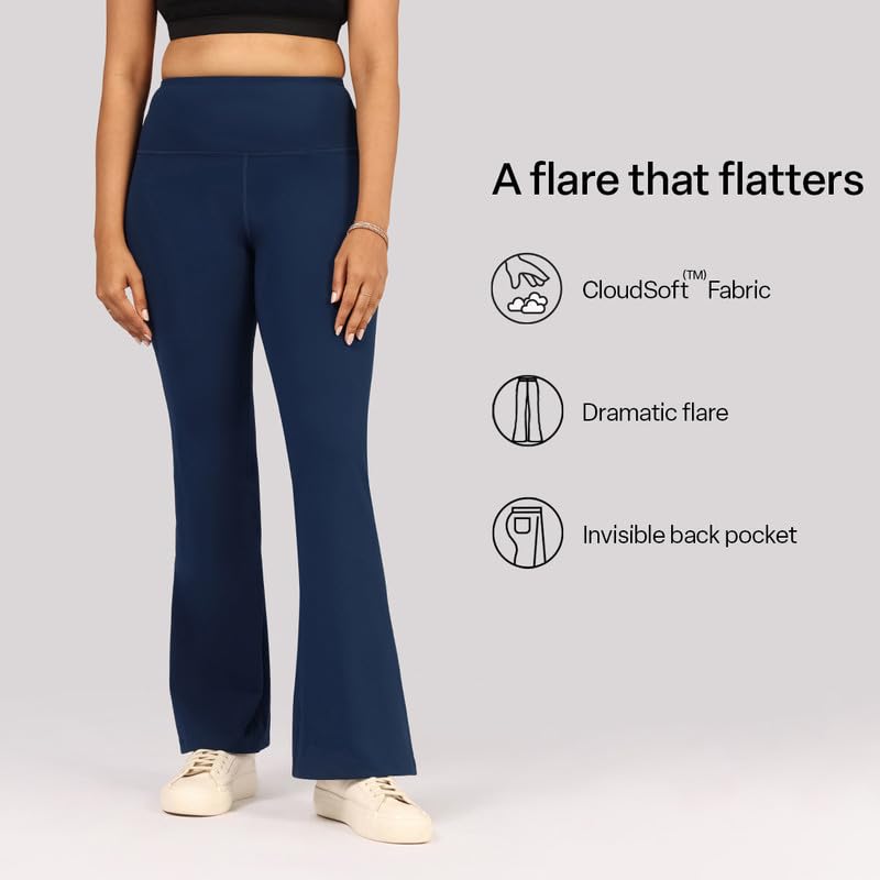 BlissClub Ultimate Flare Pants Lite Regular for Women Upto 5’4 ft | High Waist Trousers and Formal Pants for Office wear | Comfortable fit
