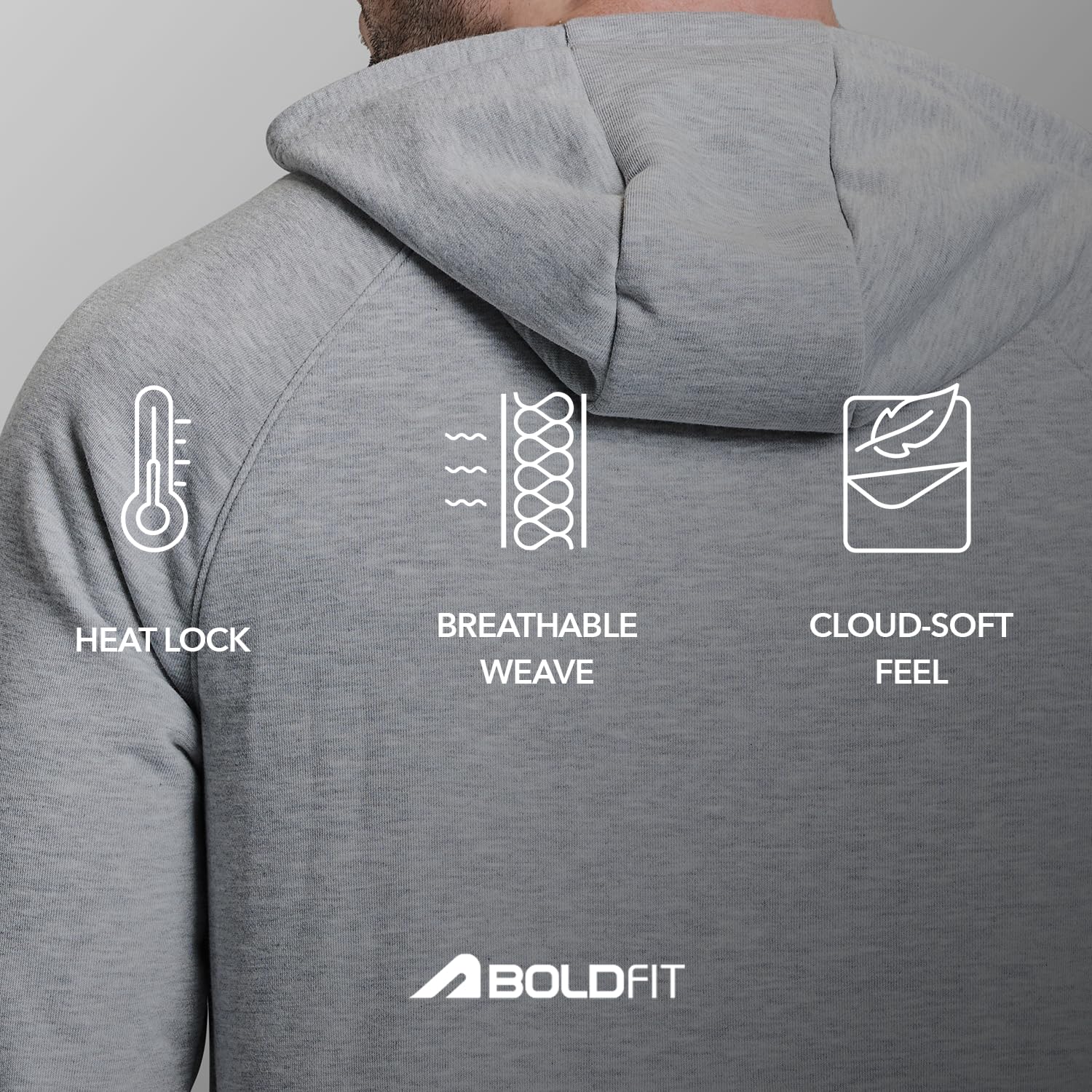 Meet your perfect pre- and post-workout companion—the Boldfit Trainr Hoodie men. Crafted from a soft poly-rayon terry blend, this mens hoodie is ideal for layering during warmups, cool downs, or as a light cover on the way to the gym. With BOLDTECH moisture management technology, it wicks away sweat, keeping you dry and comfortable throughout your workout or daily routine. The anti-static fabric ensures a smooth, cling-free wear, while the raglan sleeve design allows for easy movement, giving you the freedom to perform at your best. This sweatshirt for men hoodies features a kangaroo pocket for convenient storage, a flat drawcord for adjustable coverage, and ribbed hems for a secure fit. Whether you’re working out or hanging out, the Boldfit Trainr winter hoodie for men combines performance with style, available in Burgundy and Melange Grey. Stay comfortable, stay stylish.