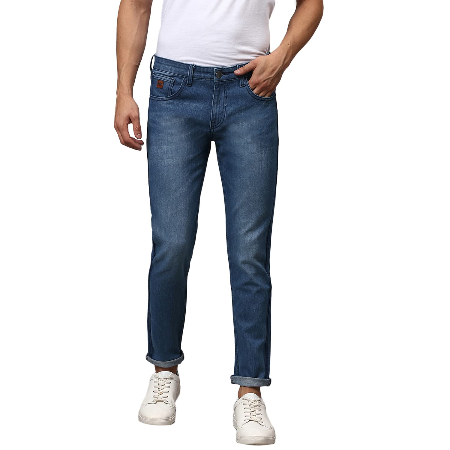 Campus Sutra Men’s Slim Fit Side Stripe Light Shade Blue Stretchable Denim Jeans