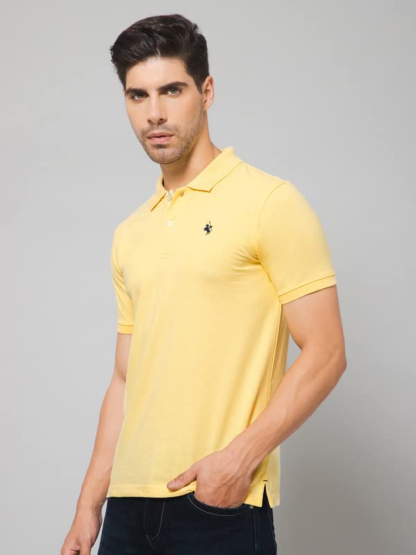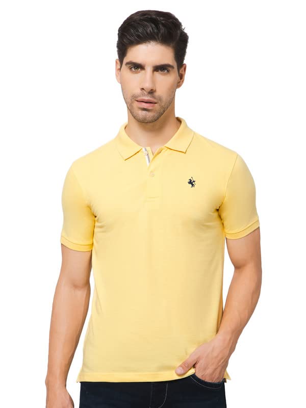 CANTABIL Fashion is a new and fascinating fashion brand that provides you the latest men’s and women’s fashion trends. In our products, we encourage to express the perfect combination of elegance and comfort. In today’s fast-paced world, we strive to differentiate and innovate our product line in order to appeal to the trend-setting generation. We are constantly aiming to offer fresh styles and bring value to India’s fashion aware wardrobes, keeping our customers’ satisfaction as our top goal. Choose from our trendy selection of Jeans, T-Shirts, Shirts, Trousers, Chinos, Sweatshirts, Jackets, and more, and you’ll be sure to smile, look good, and feel good. Look trendy and cool in this stylish Cantabil Men Cotton Blend Polo Neck Half Sleeve Solid Yellow T-Shirt. This regular fit cotton blend solid t-shirt for men features a polo neck and half sleeves. Perfect for casual occasions, this t-shirt offers all-day comfort and exceptional breathability. Wear it with your jeans and sneakers to finish the look.