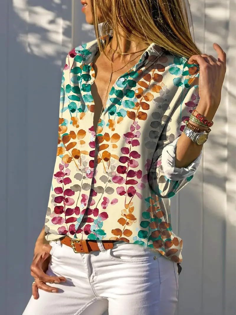 Gufrina Women’s Casual Long Sleeve Floral Print Shirt – Stylish Everyday Wear with Lapel Collar and Button-Down Design