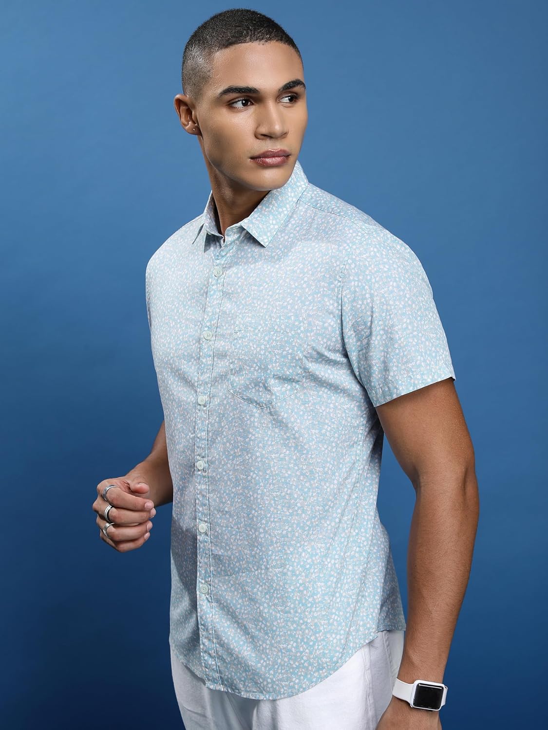 Highlander Men’s Slim Fit Shirts | Printed | Half Sleeves | Spread Collar | Casual Shirts | Stylish Shirt