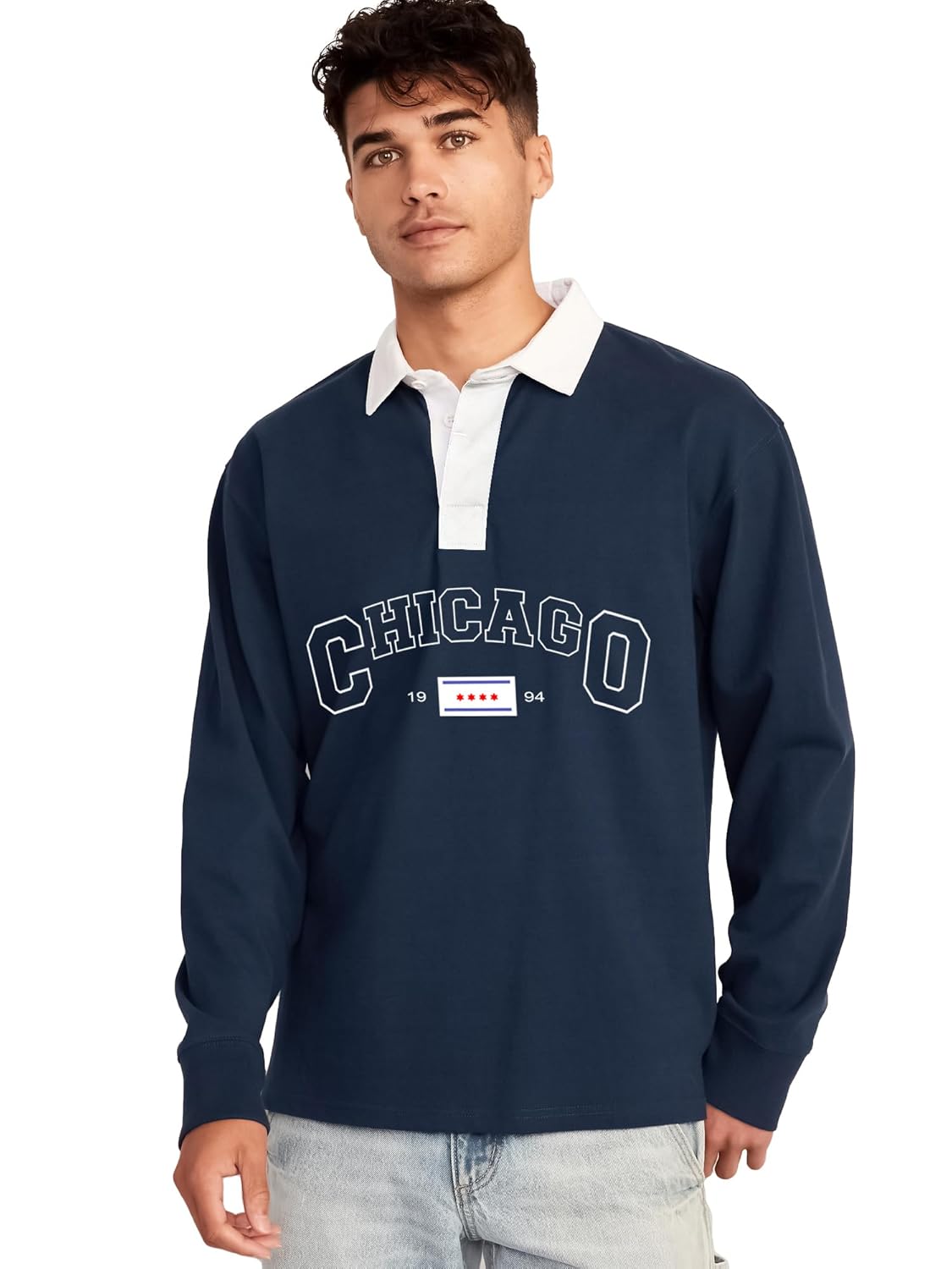 Item part number : JC23-POLO-FS-NAVY-WHT-CHICAGO-M