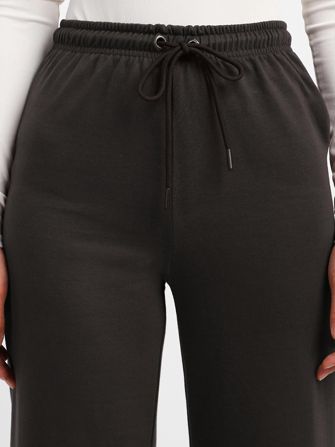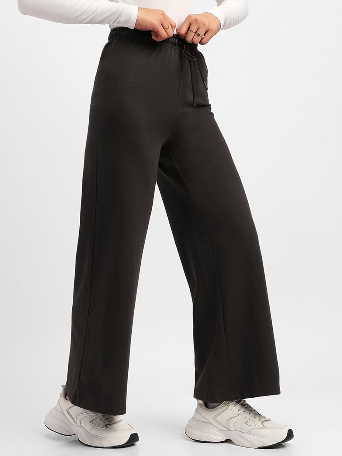 JUNEBERRY® Wide Leg Track Pants for Women & Girls (Pure Cotton, Bootcut, Regular Fit, High Rise Trouser, Drawstring, Available in Black, Brown, Navy, Olive Green, Lilac, Beige)
