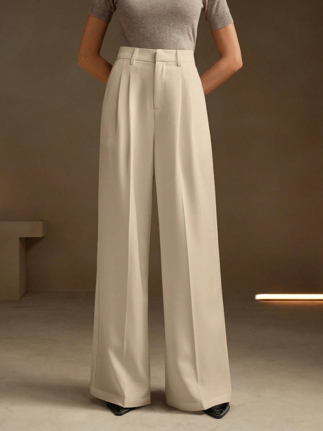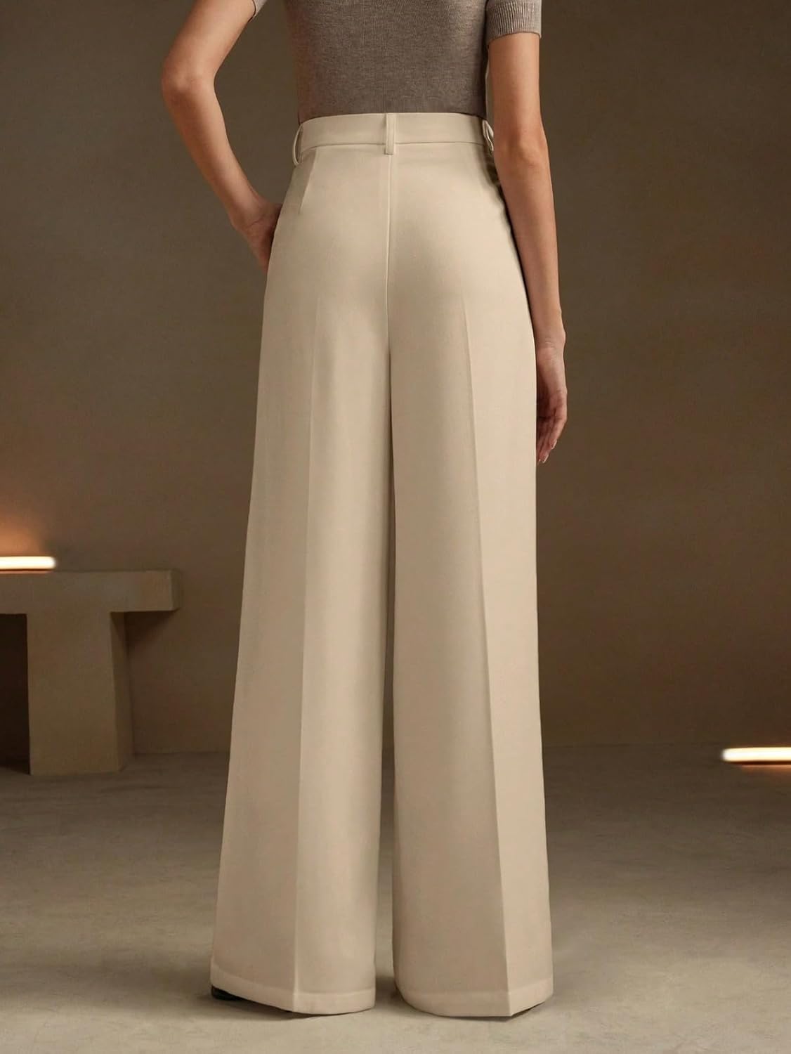KOTTY Women’s Solid|Button|Wide Leg Style|High Rise|Office wear Pant