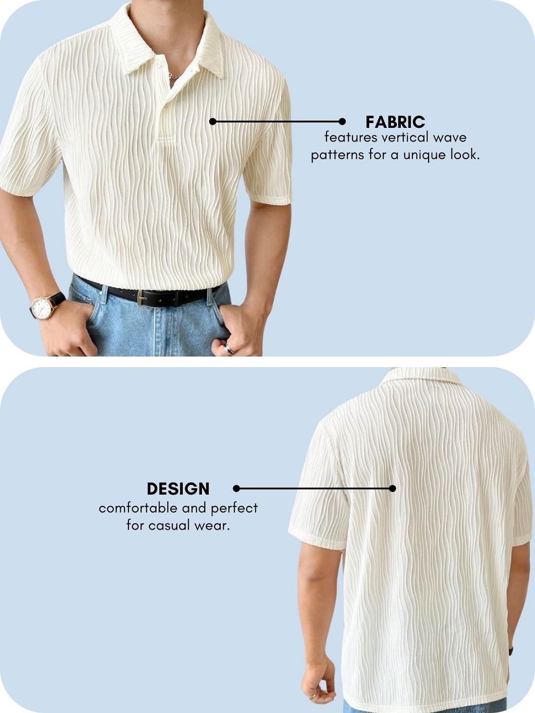 Introducing our Men’s Oversized Textured Polo T-Shirt, a modern fashion essential that seamlessly blends comfort with contemporary style. The shirt boasts an on-trend oversized fit, providing a relaxed silhouette for a fashion-forward look. Elevate your wardrobe with the unique textured fabric that not only adds visual interest but also ensures a premium feel against the skin. The versatile design effortlessly transitions from casual outings to semi-formal occasions, offering a go-to option for various settings. Enjoy the classic sophistication of the polo collar, adding a refined touch to your outfit. Crafted from high-quality materials, this polo tee prioritizes comfort without compromising style, making it an ideal choice for all-day wear. With easy-care fabric, it simplifies your routine, maintaining its shape and texture even after multiple washes. Choose from a range of color options to express your personal style, and embrace the ease of layering with the oversized silhouette. This shirt embodies casual elegance, striking the perfect balance between laid-back and refined, ensuring you stand out with meticulous attention to detail. Upgrade your wardrobe with this statement piece that effortlessly combines fashion and function.