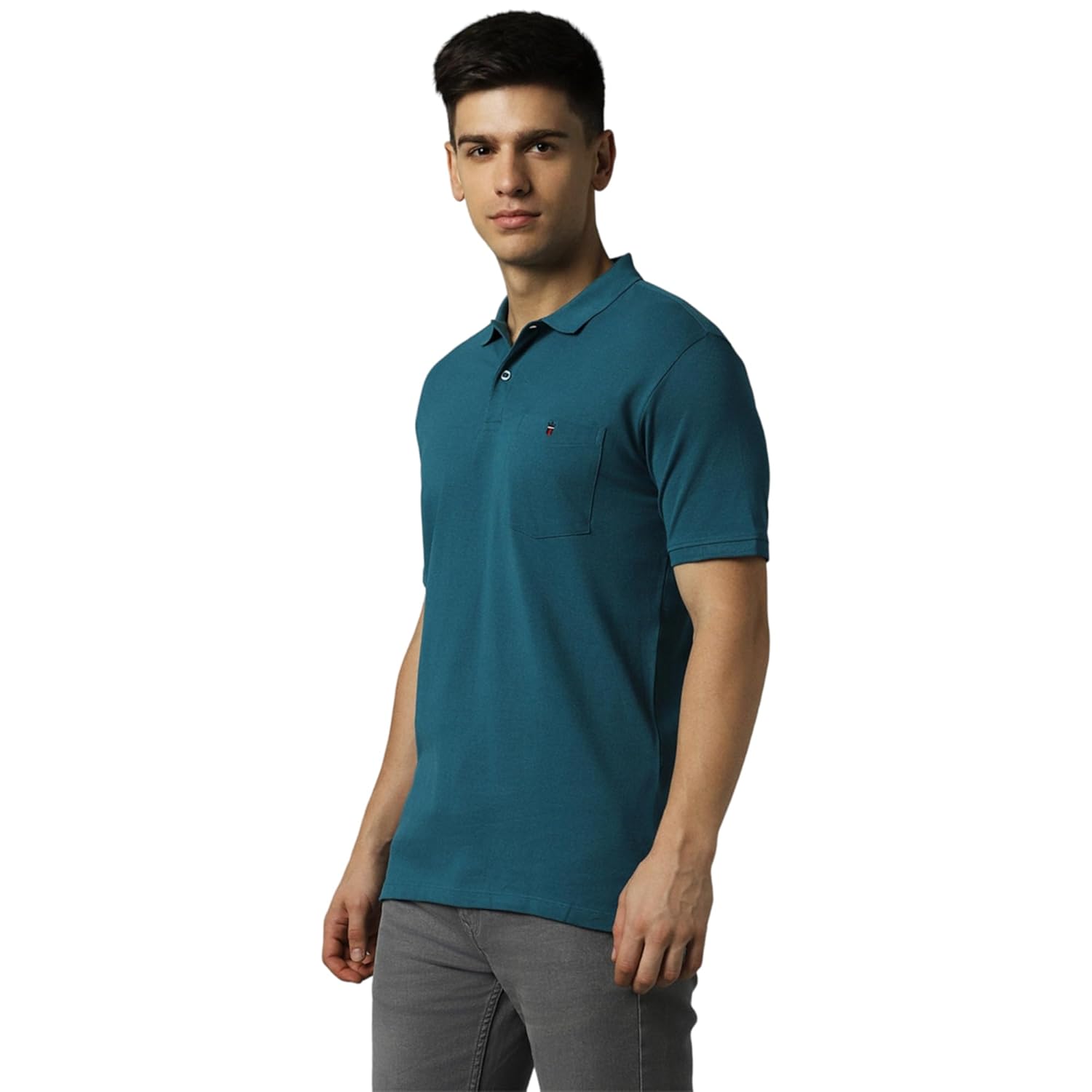 Louis Philippe Men’s Cotton Premium with Pocket Solid Polo T-Shirt Slim Fit with Color Fastness