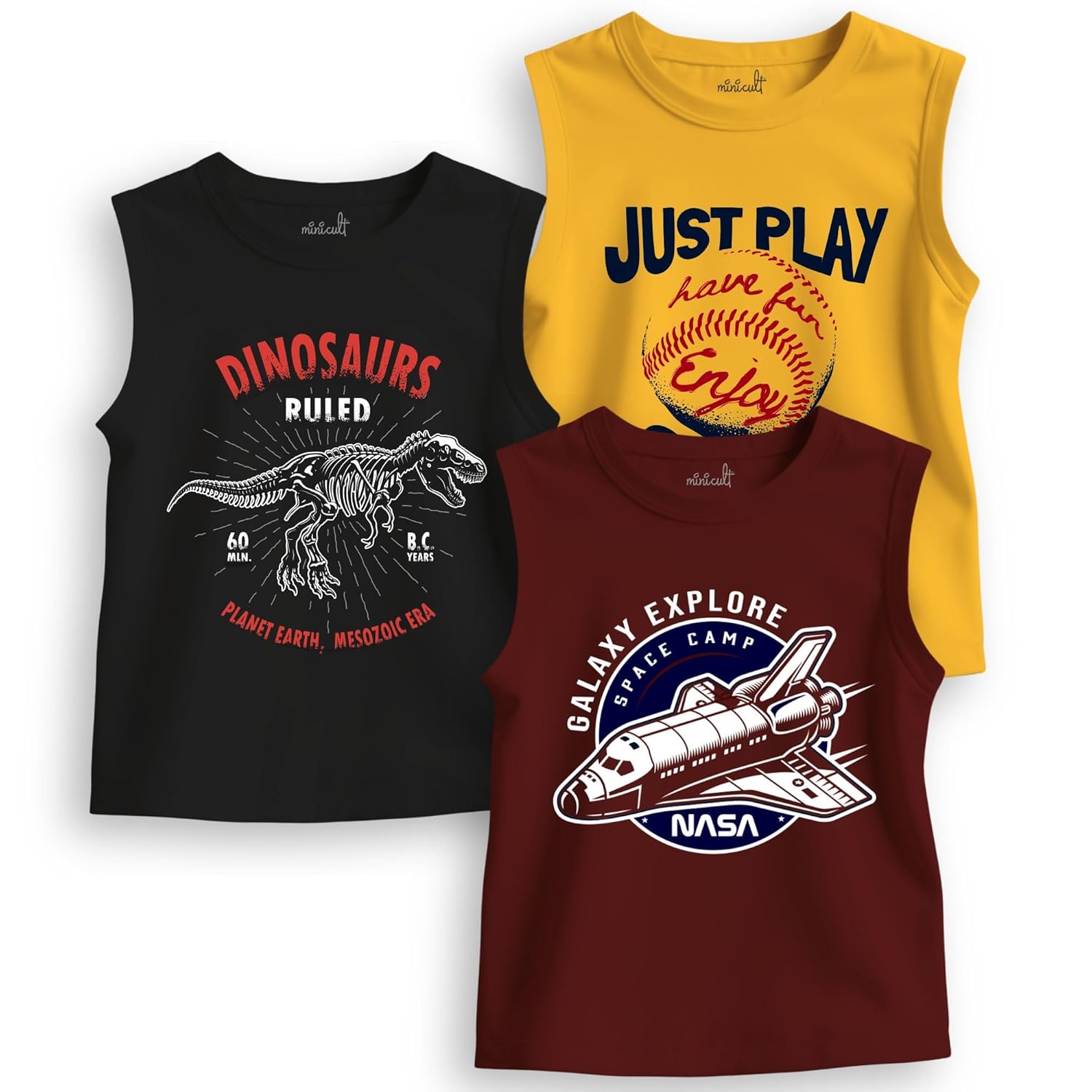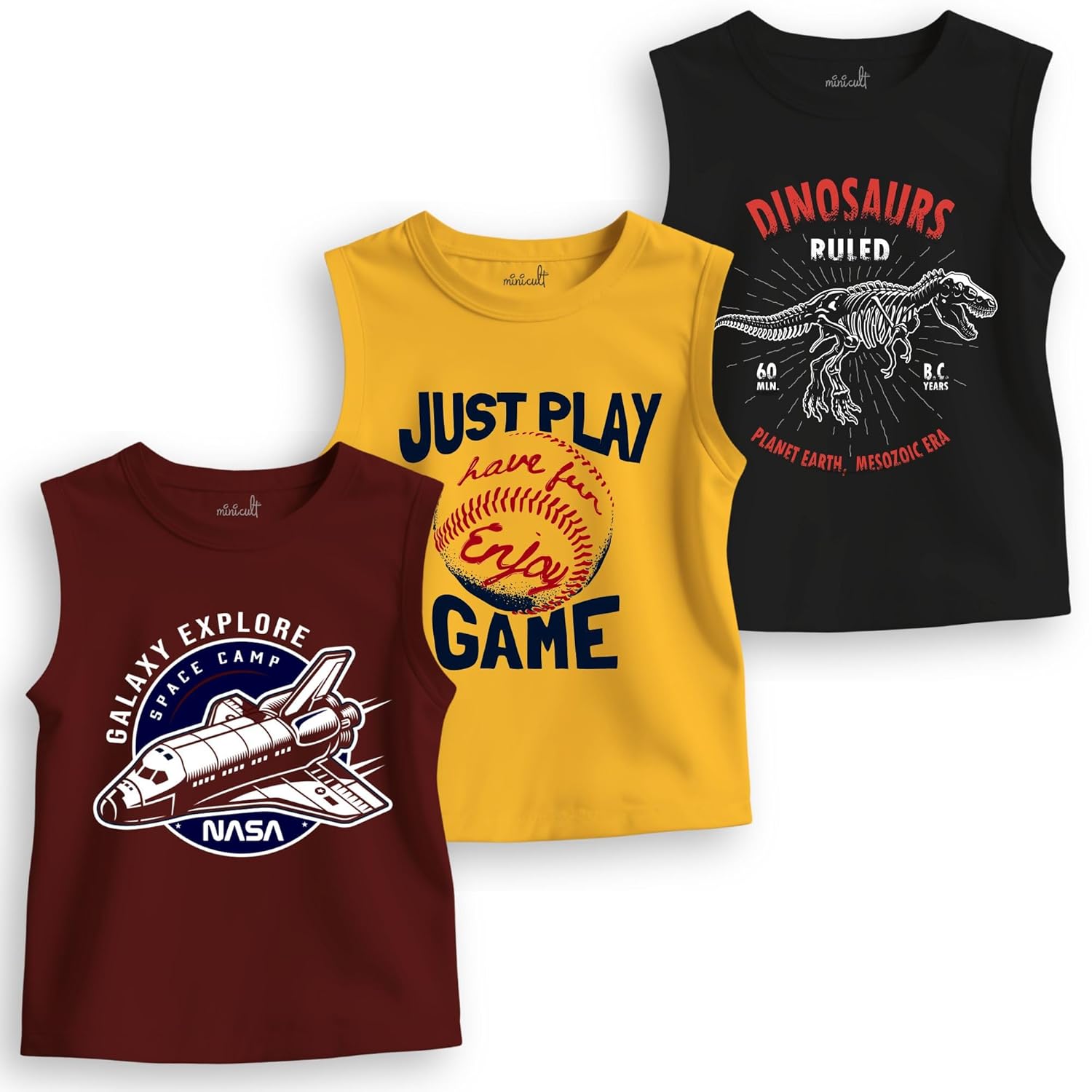 minicult Cotton Kids Vest with Mickey and Friends Character Prints(Pack of 3)