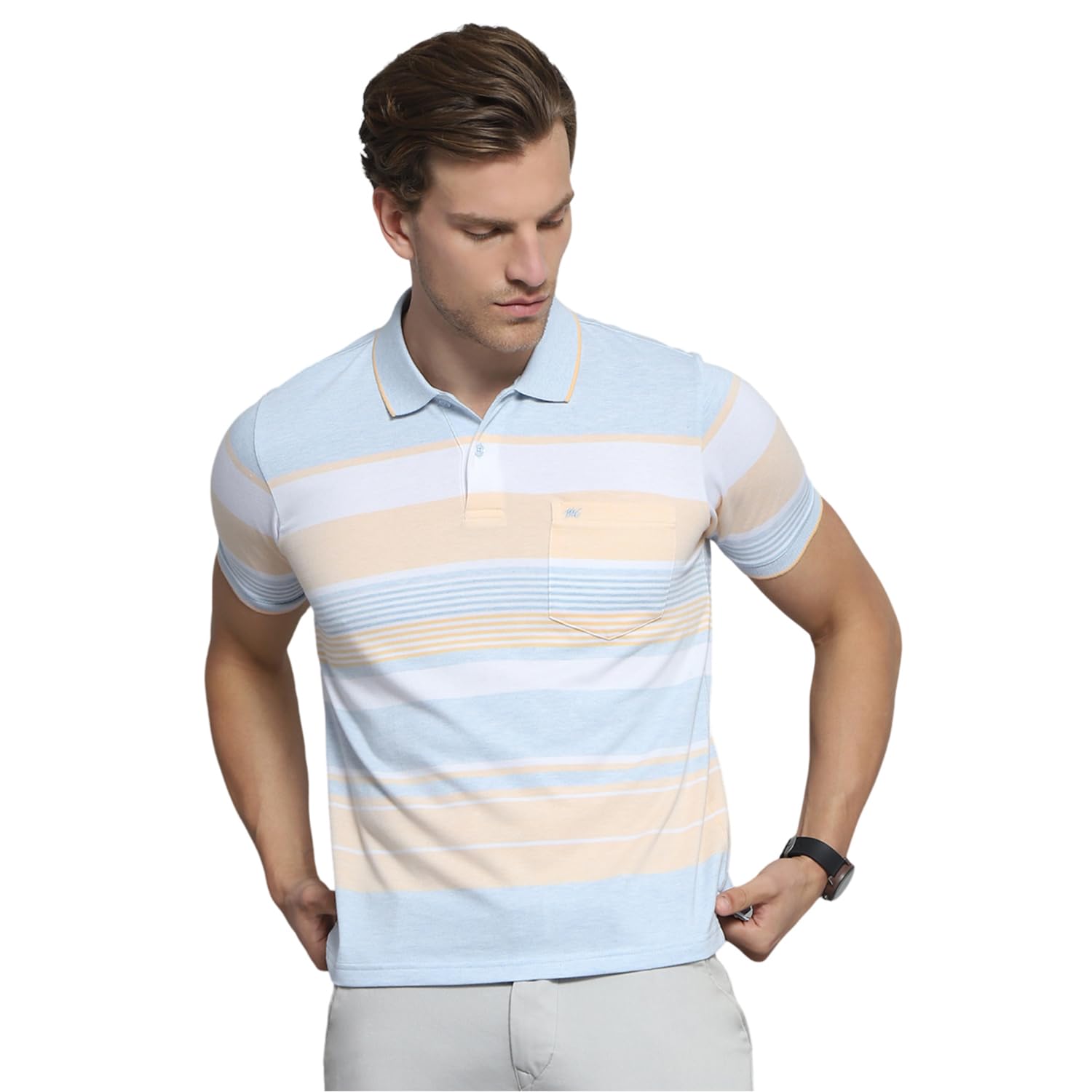 Upgrade your casual wardrobe with the Monte Carlo Men’s Regular Fit Polo T-Shirt, designed for style and comfort. Crafted from premium-quality fabric, this t-shirt offers a breathable and soft feel, making it perfect for everyday wear. The classic collared neck, classic striped pattern, and half sleeves add a trendy touch, making it ideal for casual outings, work-from-home, or weekend getaways. Pair it with jeans, chinos, or shorts for a relaxed yet stylish look.