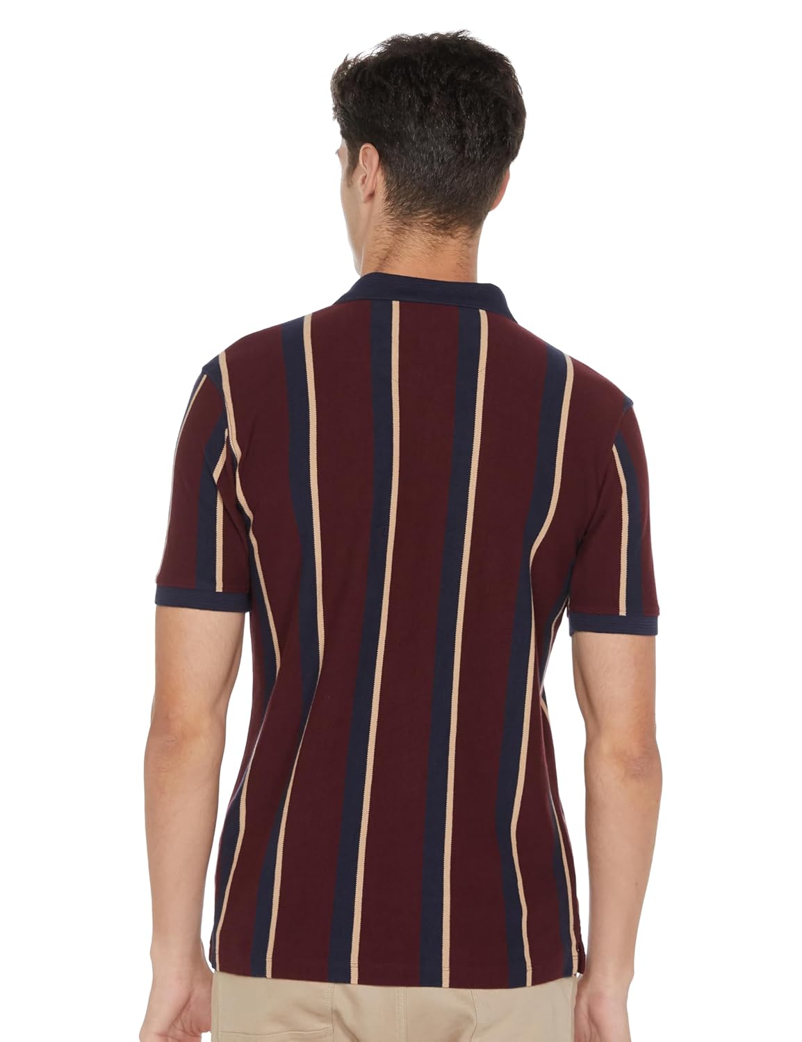 Peter England Men’s 100% Cotton Vertical Striped Polo Shirt – Casual Wear | Sleek & Comfortable