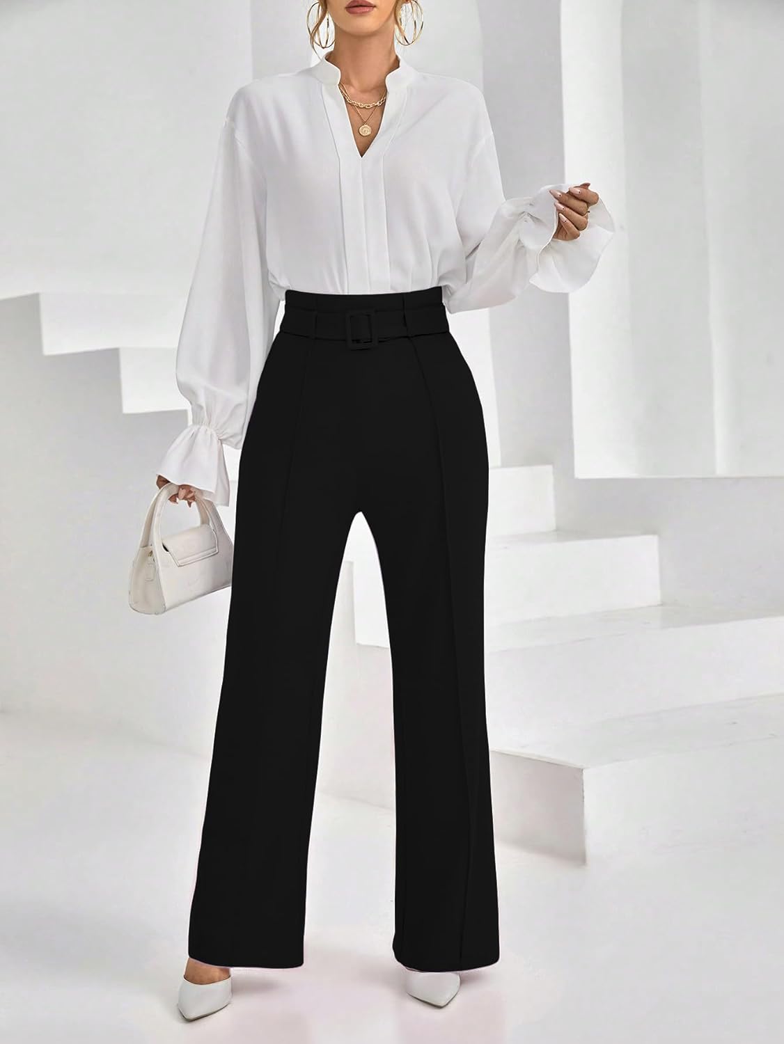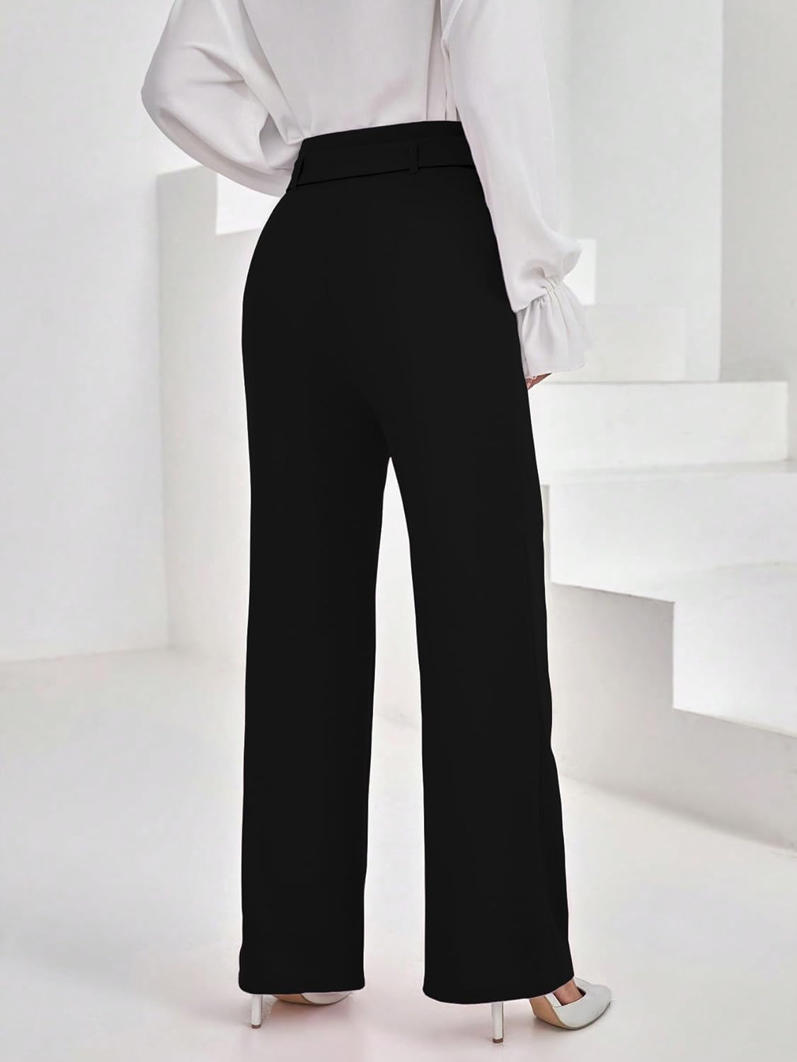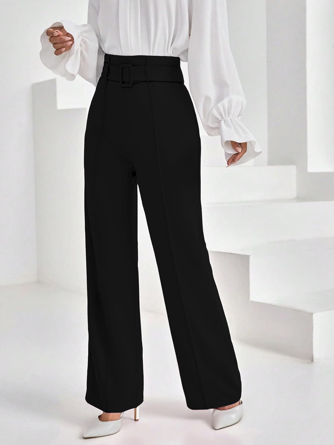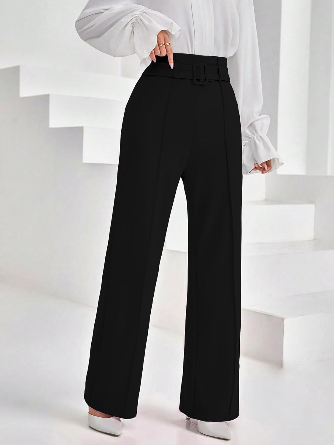 Shasmi Women’s High Rise Elegant Solid High Waisted Belted Toothpick Stripe Design Straight Loose Casual Pants, Minimalist Stylish Design, Suitable for Summer Vacation (Pant 185)