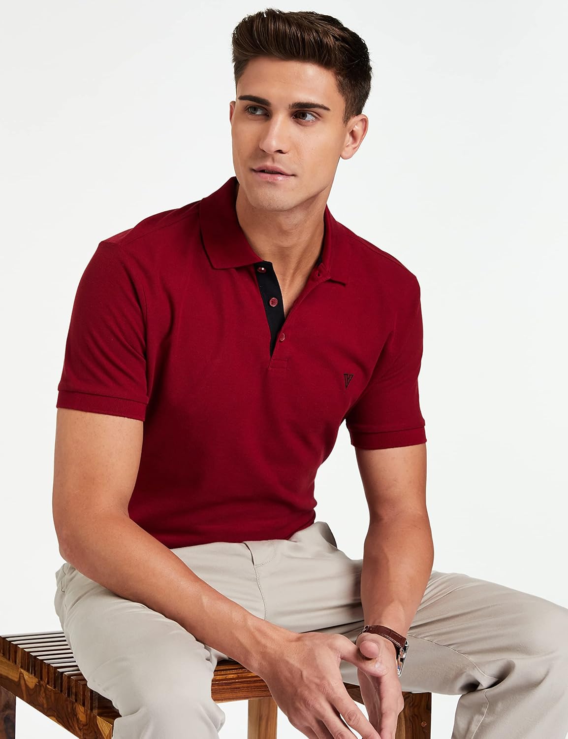 Van Heusen Men’s Solid Regular Fit Polo (60032_Wine S)