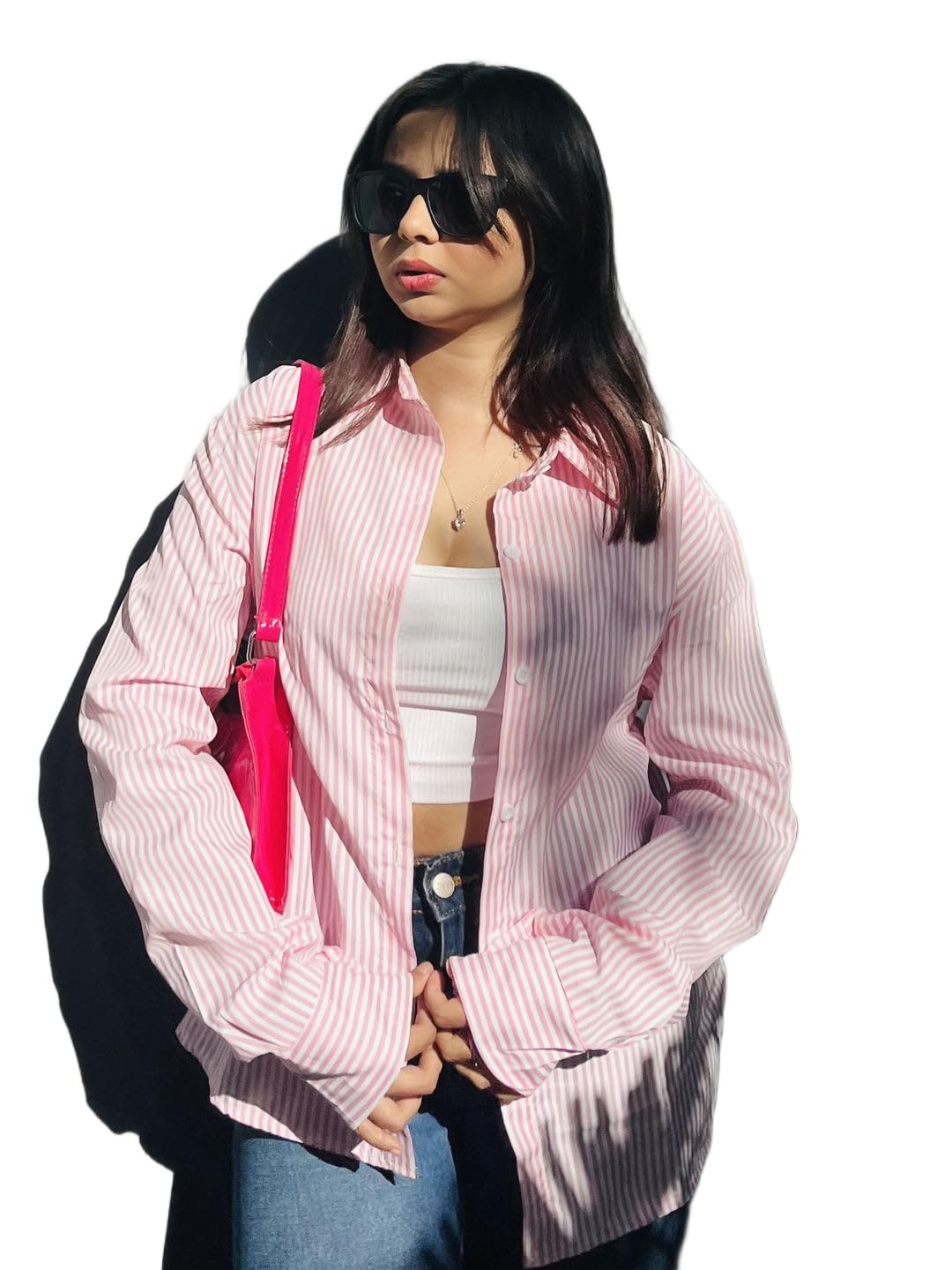 Women’s Pink Striped Shirt | Elegant Button Down Shirt for Women | Stylish Casual & Office Wear Top